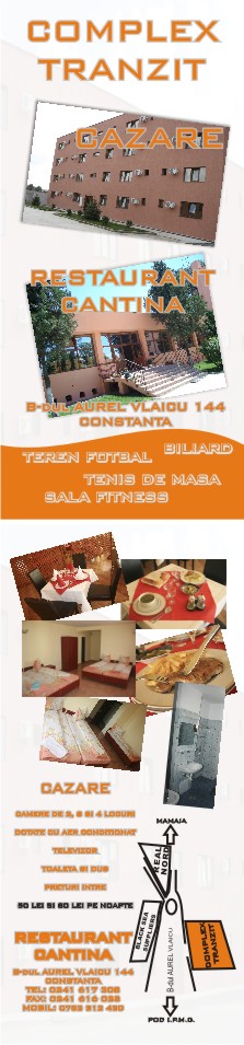 Camerele sunt renovate recent, dotarile fiind de ultima generatie. In incinta complexului Tranzit se afla si Cantina Tranzit cu o capacitate de 250 de locuri in sala mare si 60 de locuri in sala mica. Cantina Tranzit, recent renovata si utilata, organizeaza toate genurile de mese si evenimente festive. Masa se poate servi si in regim de autoservire dar si in regim de catering.